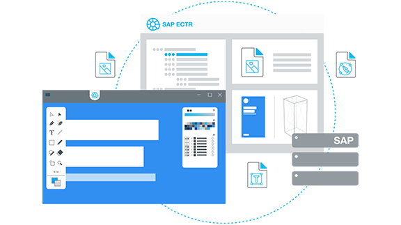 Mit der Adobe-Integration können einfach, schnell und intuitiv Adobe-Dateien in SAP Engineering Control Center | SAP ECTR gespeichert und bearbeitet werden – und stehen somit zentral im SAP-System für Folgeprozesse zur Verfügung. Unterstützt wird dabei das Adobe-Powergespann: Adobe Photoshop, Adobe Illustrator und Adobe InDesign.